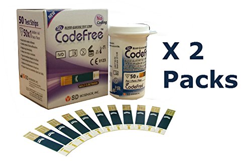 You will receive 2 boxes of 50 x SD CodeFree Blood Glucose Test Strips. These test strips are solely for use with the SD CodeFree Blood Glucose Monitor.