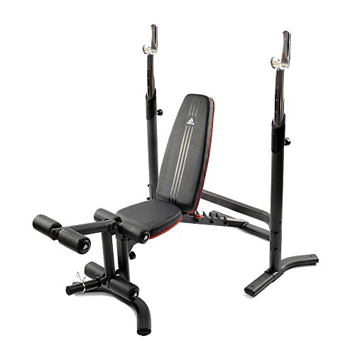 The Adidas Olympic bench is a heavy duty, multi-position bench that will help you increase power, improve muscular strength and help increase endurance.It has an oversized bench pad with 65mm thick, high density foam for maximum comfort. Its large diameter steel tubing with black powder coated finish provides greater durability. The bench is supplied with a total leg developer and a height- adjustable squat rack/chest press stand that provide a greater range of exercises and ensure an effective whole body workout.