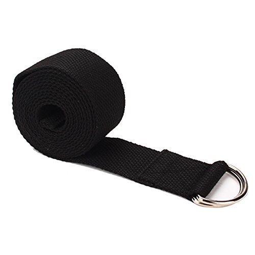 Note: The color of the item may vary slightly due to photography and your own computer This yoga belt will make body stretching much easier for beginners. It benefits your abdominal, waist, arms, legs and back (almost all parts of the body) during the yoga training. Durable and firm thick cotton belt, easy-release buckle and D-ring Material:Cotton+Polyester Color:Black Size:183x3.8cm/72.04x1.5 inch Weight:81g