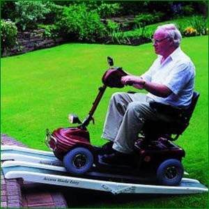 A pair of lightweight folding channel ramps manufactured from fibreglass and designed for wheelchair or scooter access.