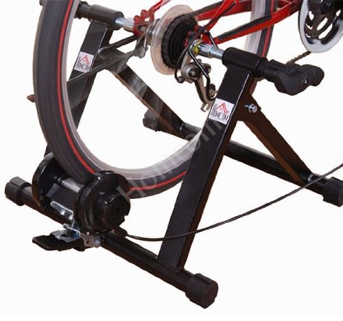 Regardless of the weather outside, you can stay in shape with your own bike! The Kinetic Cyclone Bicycle Trainer offers wind resistance at its finest. It offers effective indoor training in a stiff, well supported frame with little noise - at a reasonable cost. The Trainer Easy to fasten the knob screw or bolt on rear wheels. Hooks up to just about any bike--including road and mountain bikes with a 26", 27" or 700c wheel. Fine-tune to your wheel and tire size with the micro-adjust knob.Specification: -Bike training in your home with smooth and Kinetic Cyclone. - This model comes with fan / flywheel resistance unit - The Trainer can be folded for easy travel and storage. - Precision-machined roller to reduce tire wear. - Assembled Dimensions: 21.5*19.4*15.4 inch. - Max weight capacity: 150kg - Color: black - Condition: brand new