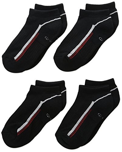 PEDS Little Boys’ Growing Half Cushion Low Cut Socks, Black/White/Red, 4-13 (Pack of 4)