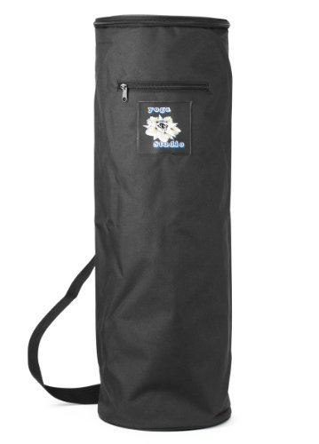 The bag has an adjustable over the shoulder strap and top zipper to facilitate easy loading of rolled yoga mat.